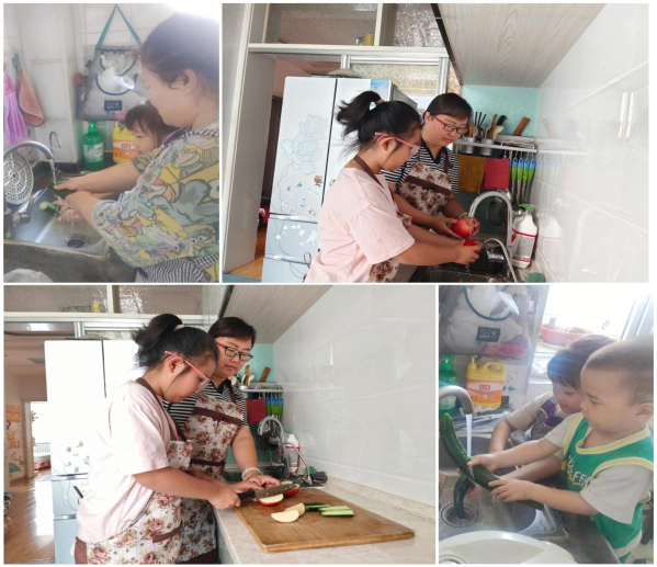 (“小围裙”活动中小朋友们帮助家里做家务)