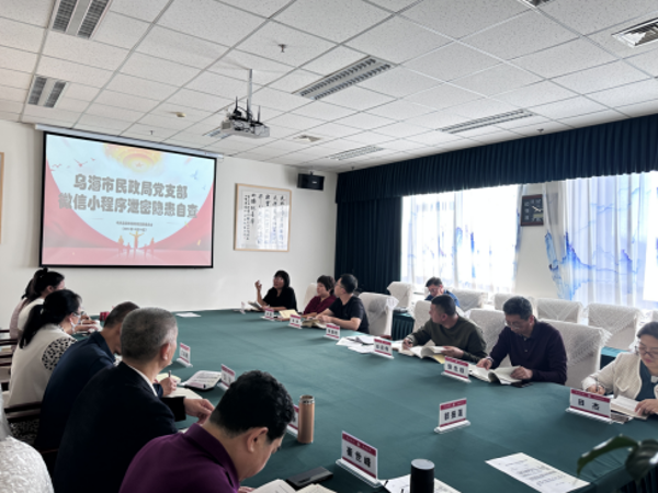 11月6日,乌海市民政局组织开展集中学习,学习习近平总书记在中共中央政治局第九次集体学习时的重要讲话精神,第七次全国妇女儿童工作会议精神、《国务院关于推动内蒙古高质量发展奋力书写中国式现代化新篇章的意见》、微信小程序泄密隐患等,并举办学习贯彻习近平新时代中国特色社会主义思想主题教育第四期读书班。机关全体人员参加。