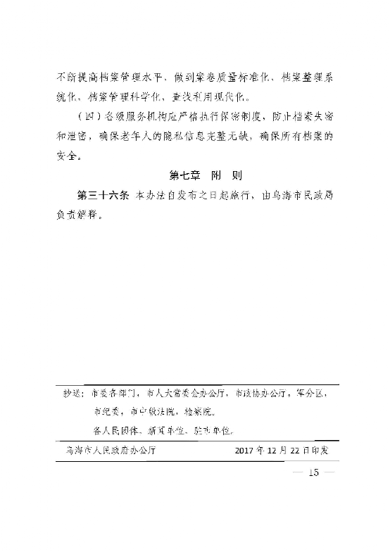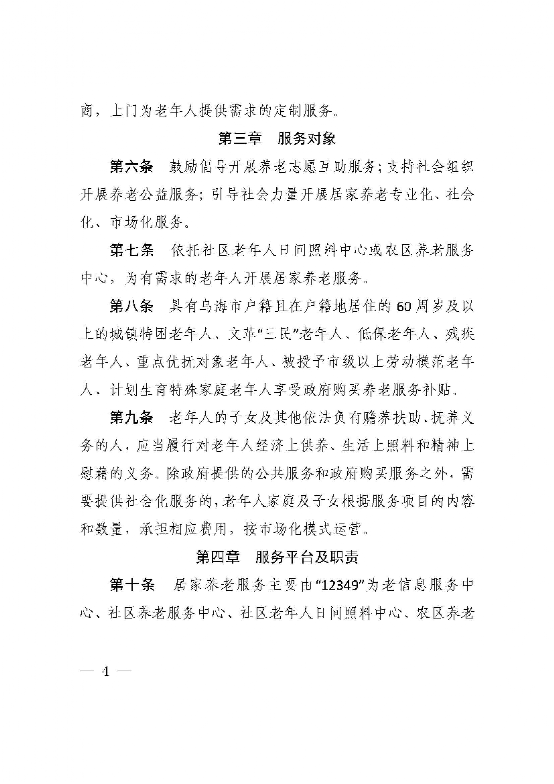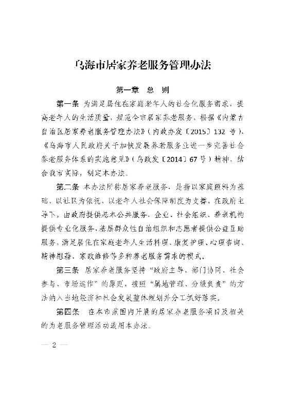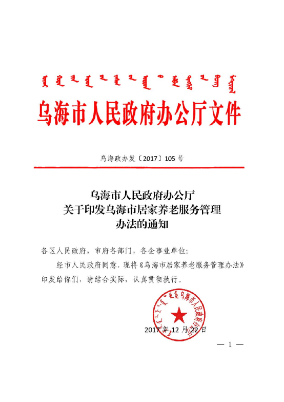 乌海市人民政府办公厅关于印发乌海市居家养老服务管理办法的通知